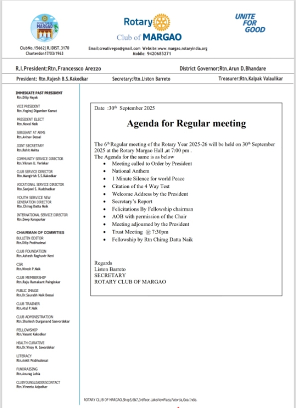 3rd BOD was held at the rotary hall margao . minutes of the last me. . .